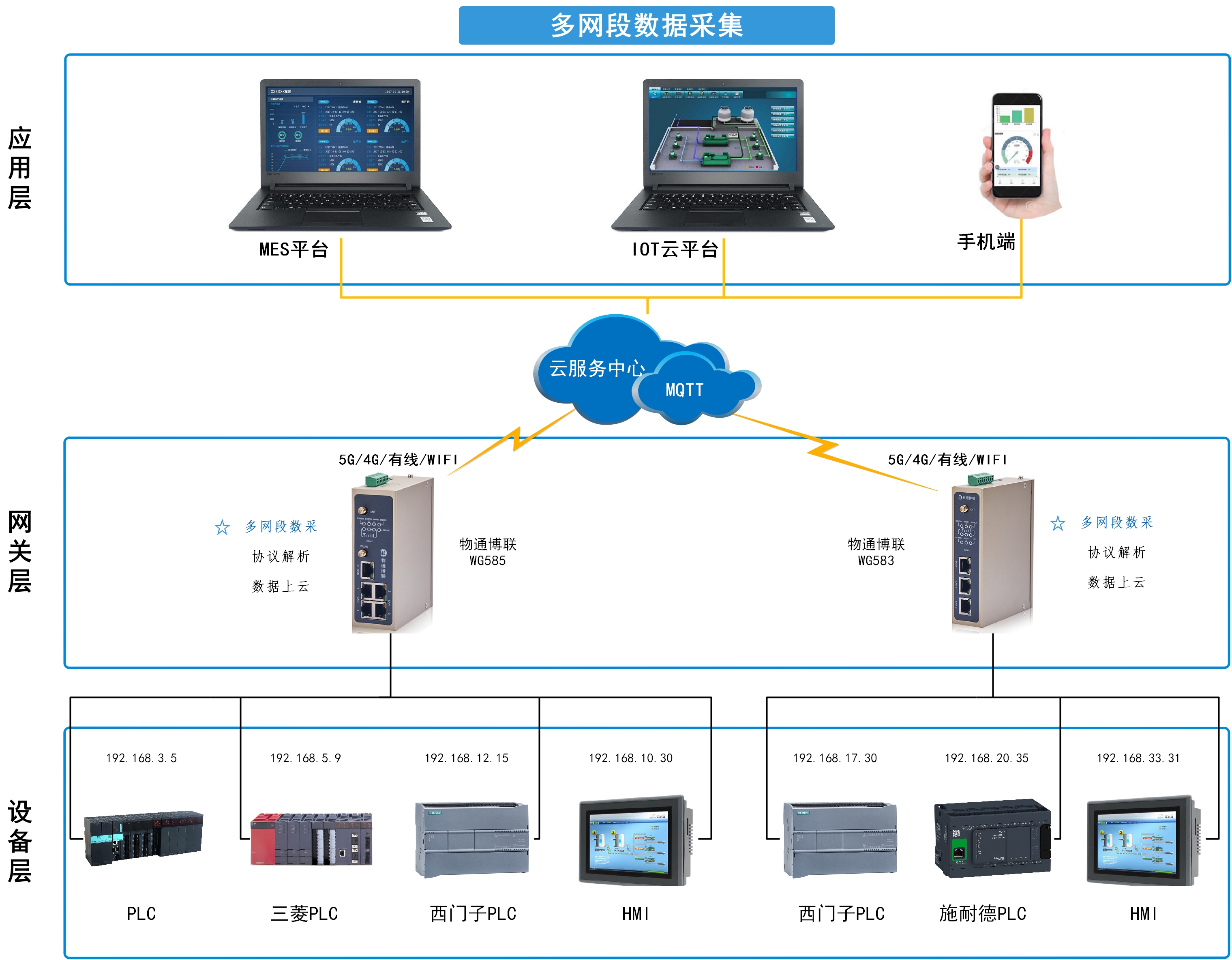 針對(duì)這些問(wèn)題,物通博聯(lián)公司推出了一款全新的WC系列網(wǎng)段隔離器。該系列產(chǎn)品適用于生產(chǎn)網(wǎng)絡(luò)對(duì) PLC、HMI、CNC、DCS、MES等網(wǎng)絡(luò)通訊和數(shù)據(jù)采集,兼有跨網(wǎng)段隔離和IP轉(zhuǎn)換的功能,車間多個(gè)設(shè)備,如果有不同網(wǎng)段的IP地址,則可以統(tǒng)一成同一網(wǎng)段的IP地址,進(jìn)行設(shè)備(PLC、CNC)的在線編程、數(shù)據(jù)采集、遠(yuǎn)程管理等各種跨網(wǎng)段訪問(wèn),能夠有效地解決企業(yè)內(nèi)部網(wǎng)絡(luò)中的通信問(wèn)題、安全問(wèn)題,保障企業(yè)數(shù)據(jù)的安全性和可靠性。