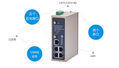 支持五個網(wǎng)口、兩個串口、支持5G RedCap、4G、WIFI、以太網(wǎng)等多種聯(lián)網(wǎng)方式接入
